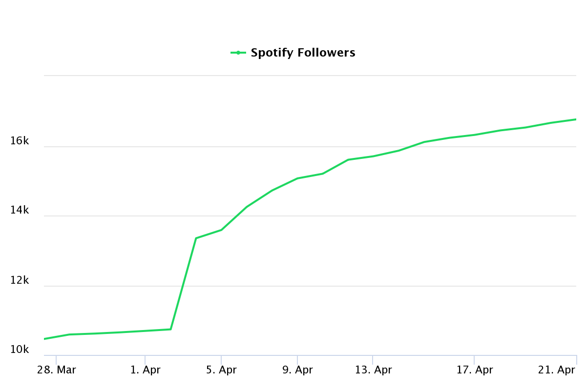 Another possible contributor to the recent growth has been Kays' steady following on social media, where she holds an audience of 17k Followers on Twitter and 36.8k on Instagram, averaging over 1.9k Likes per photo on the latter. In addition, Kays' YouTube currently logs 8.1k Subscribers and is seeing a weekly growth of 1.1k new Subscribers and 45.5k Views, mainly in result to the recent virality of "No Matter the Season."